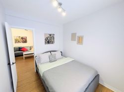 Spacious apartment in Longueuil, 3 bedrooms, 1 bathroom, living room, dining room, and balcony, fully furnished, perfect for executives, insurance claims, has everything you need for a short or long stay, a few steps from pharmacies, supermarkets, gas stations, and public transportation.